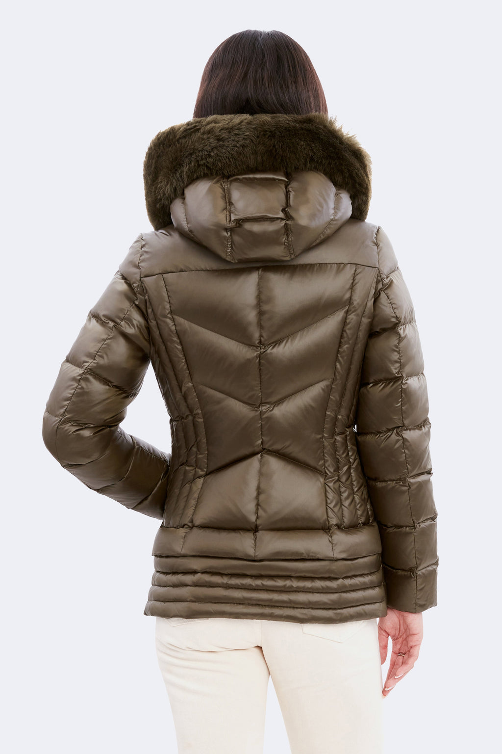 The Nikki jacket is one of our most popular styles, thanks to the meticulous quilting technique we developed to create an ultra-flattering fit through the waist. That, plus the subtle sheen of the fabric and detachable shearling hood trim make this puffer the iconic wardrobe staple that it is, with a kaleidoscope of versatile color options to choose from. Our Iconic Nikki is a winter coat to be reckoned with. Its sophisticated fabric protects against the winter chill while creating a flattering fit throughout the waist with our quilt lines.