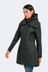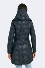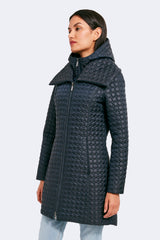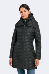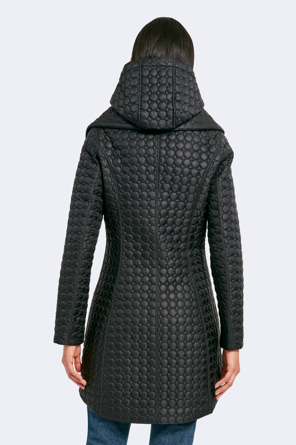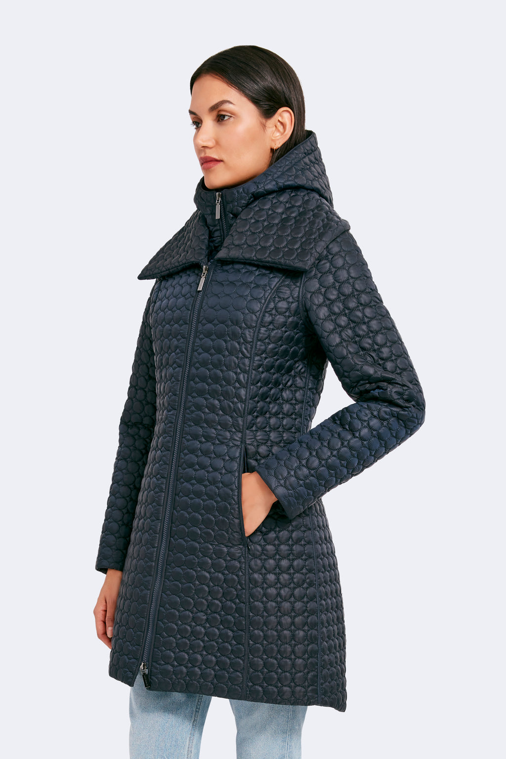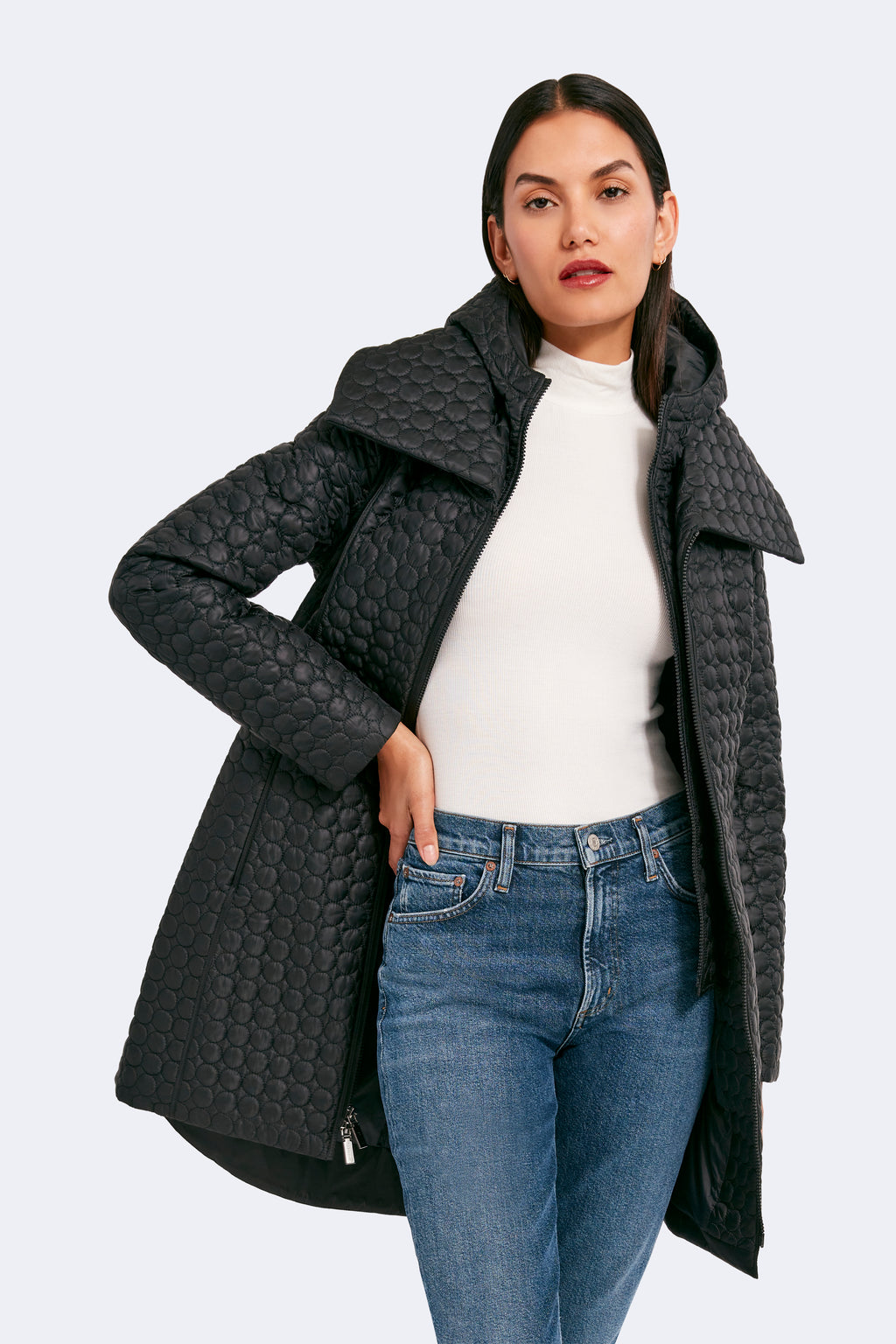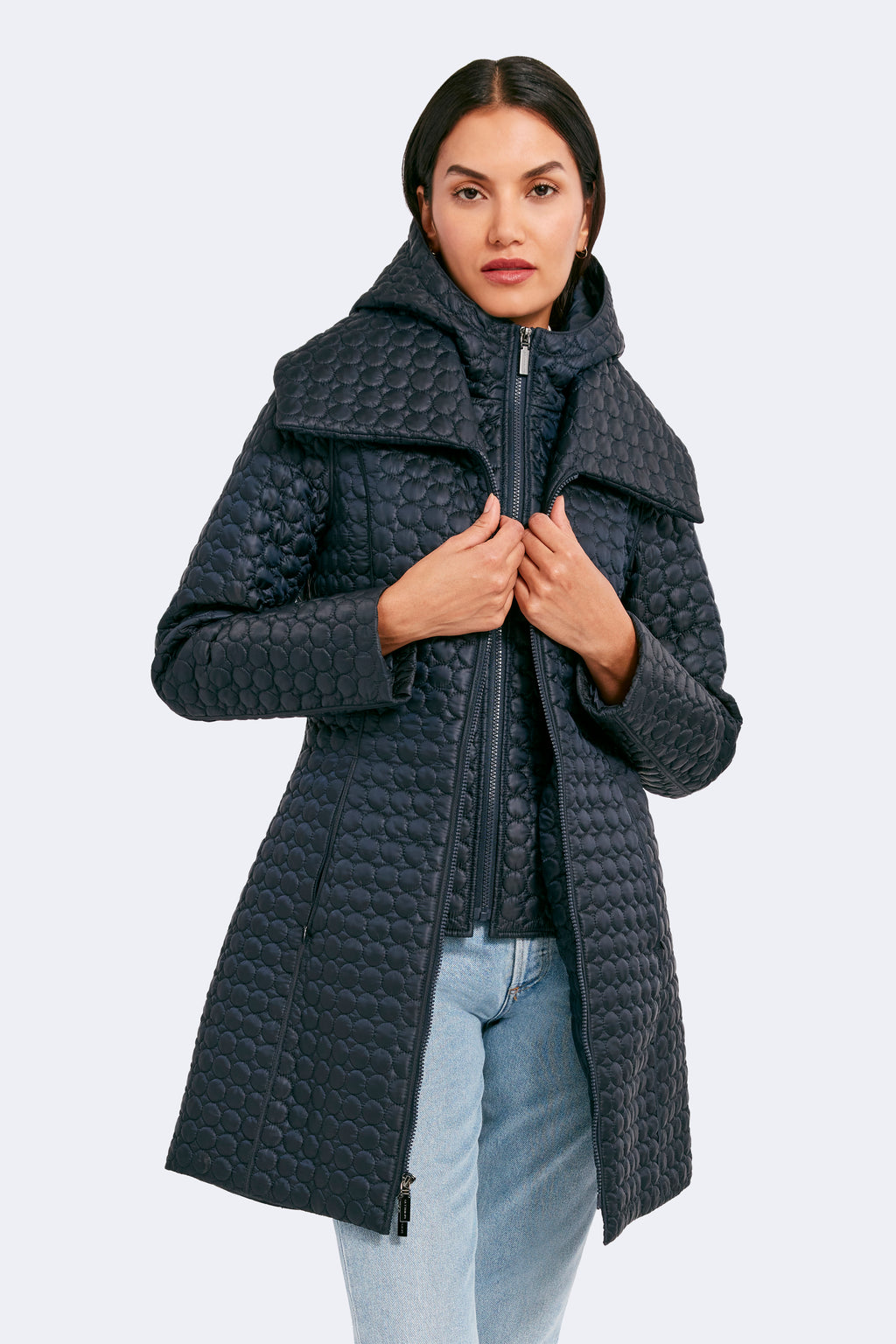The timeless silhouette of Gwen has been modernized with features that meet the demands of the modern woman. Highlighting a fan collar, an attached hood, and a zipped-in insulated bib, this jacket is crafted for any season. The signature quilted shell fabric with a matte finish offers lightweight coverage, while the cinched waist adds a feminine touch.